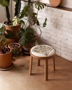 A Linha Bordado, composta por cadeira, banqueta e banco, evoca elementos do bordado, como o bastidor e o novelo.