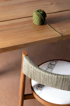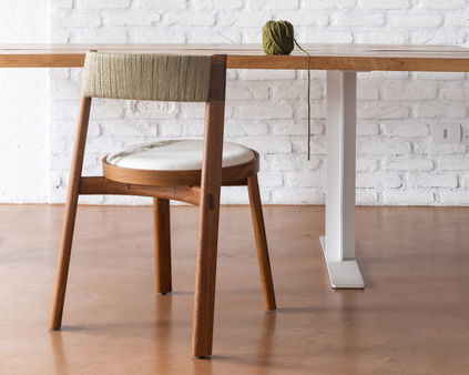 A Linha Bordado, composta por cadeira, banqueta e banco, evoca elementos do bordado, como o bastidor e o novelo.